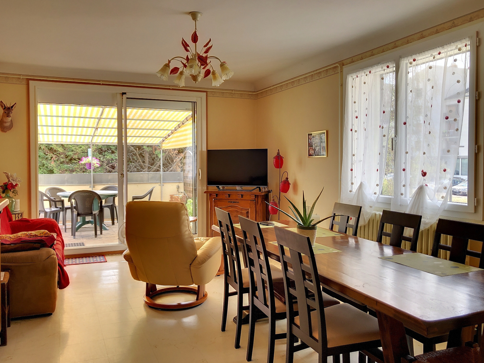 A l'étage : appartement loué de 100m² vous offrant : Entrée, cusine récente toute équipée, salon avec accès sur une spacieuse terrasse. Le coin nuit se compose de trois chambres, salle d'eau récente et WC séparé.