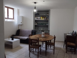 Entrée, cuisine ouverte sur un salon cosy. WC.